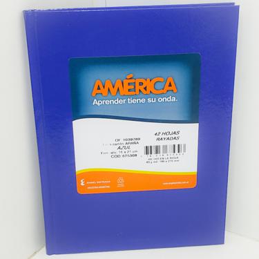 / Cuaderno Tapa Dura 42 Hojas Rayadas Formato 16 X 21 Cm America Azul