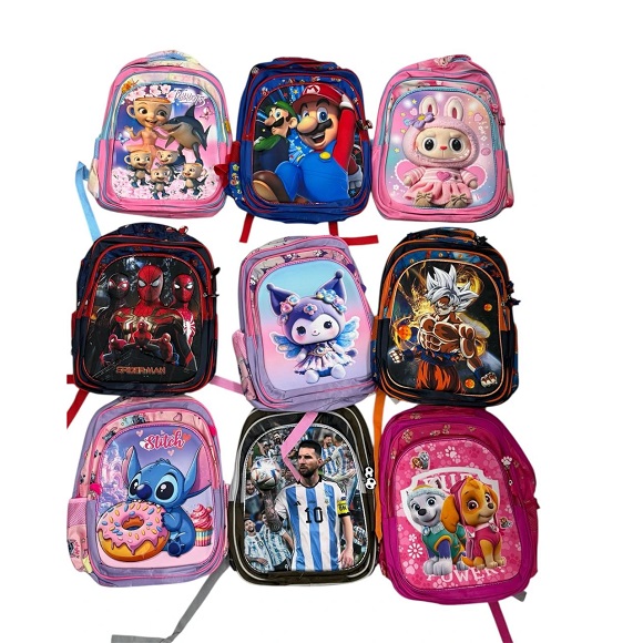 Mochila 3D personaje 3 cierres 16'' cantidad